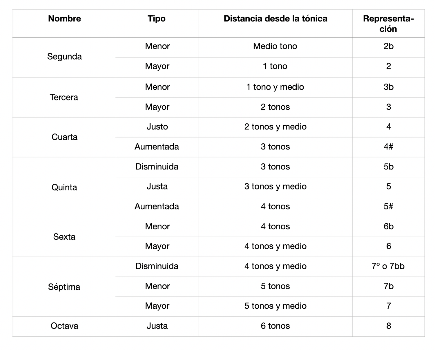 Clasificación de los intervalos